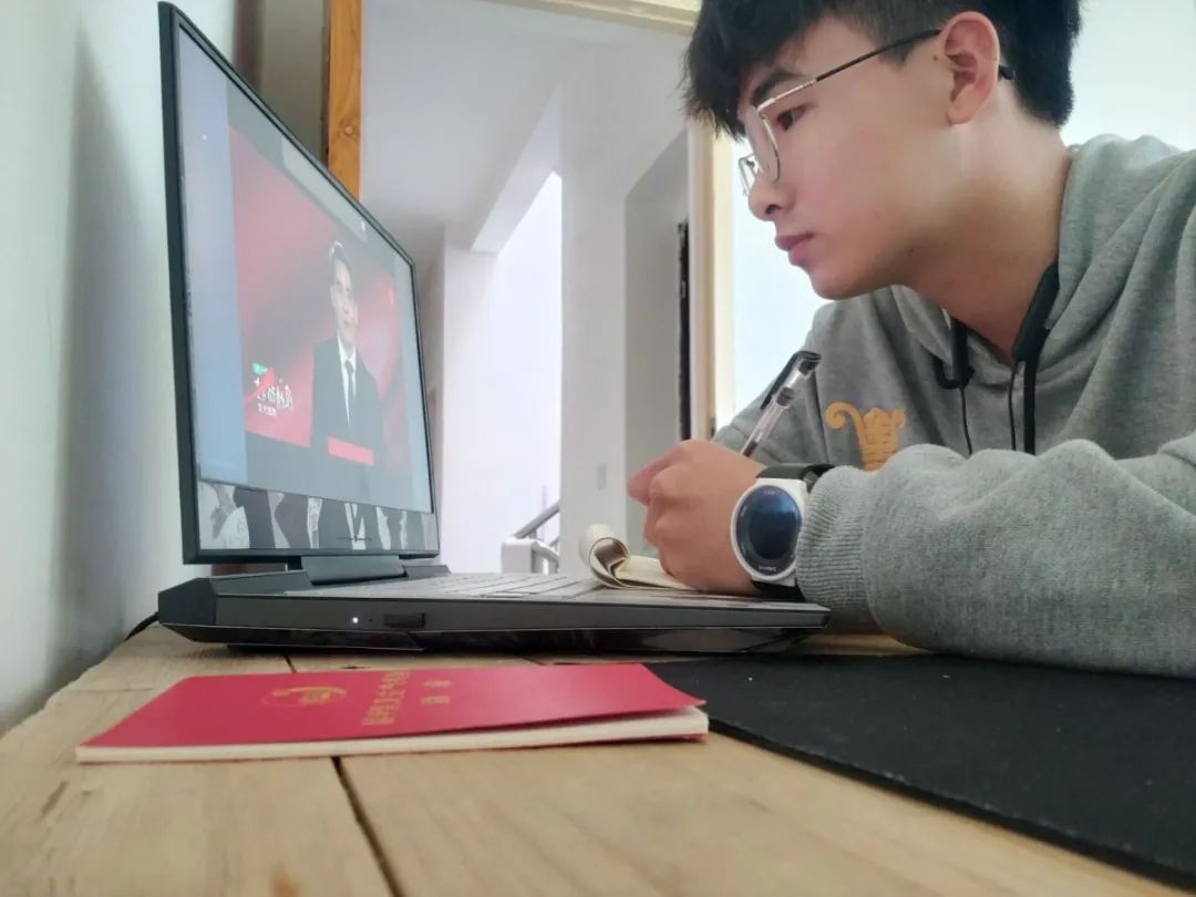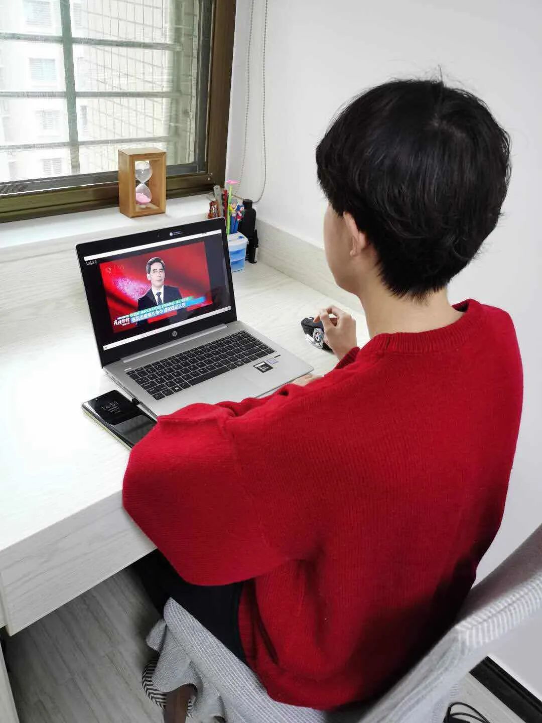 面對“防控思政大課”,同學們絲毫沒有松懈,聚精會神的看著直播,從他們的眼神中可以看出那團熊熊烈火,以及那份堅定的信念。