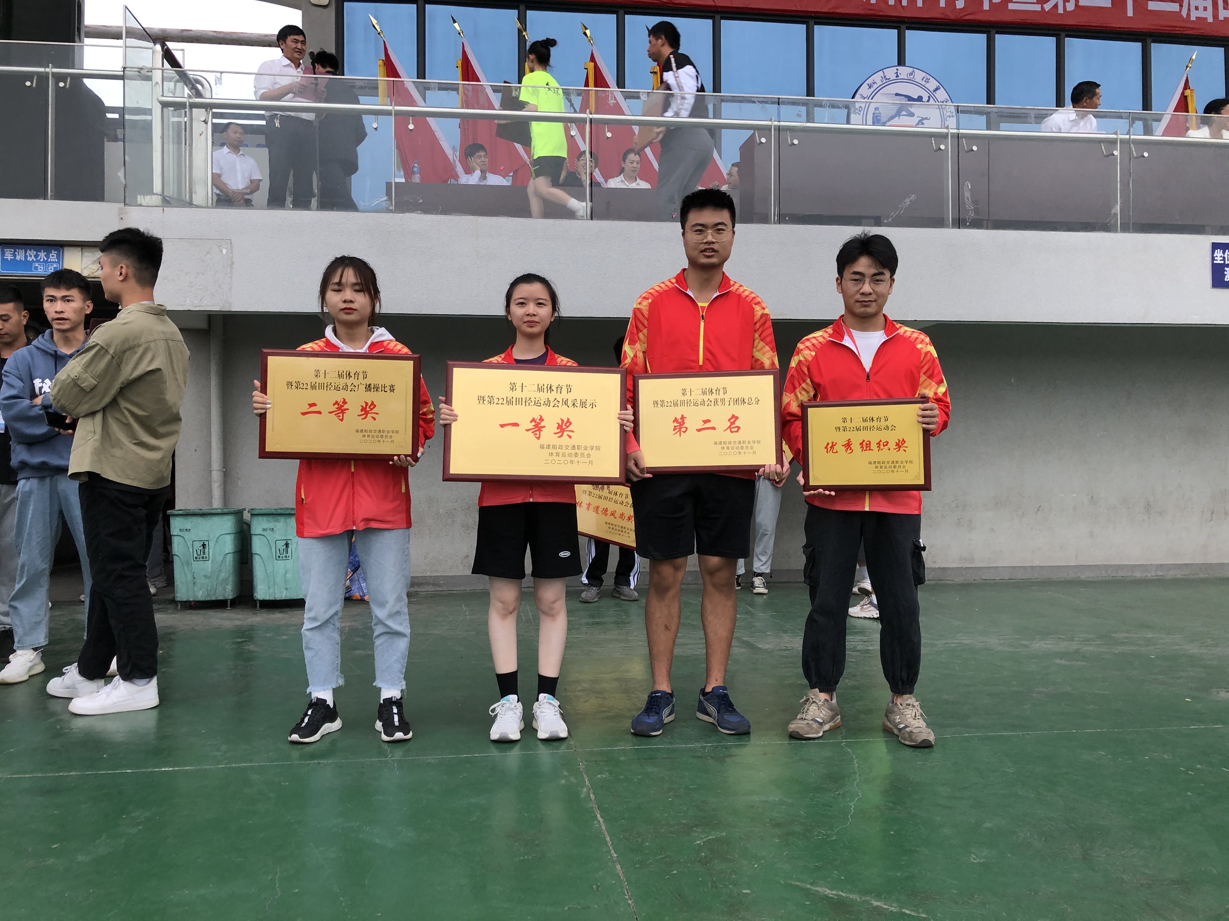 汽車學院運動員們通過努力的拼搏、激烈的角逐,汽車學院榮獲學院風采展示一等獎、廣播體操團體二等獎、男子團體二等獎等榮譽。汽車學子充分發(fā)揮自己的實力,賽出水平,賽出風格,取得不俗的成績,為各自班集體爭光,為我院添彩。