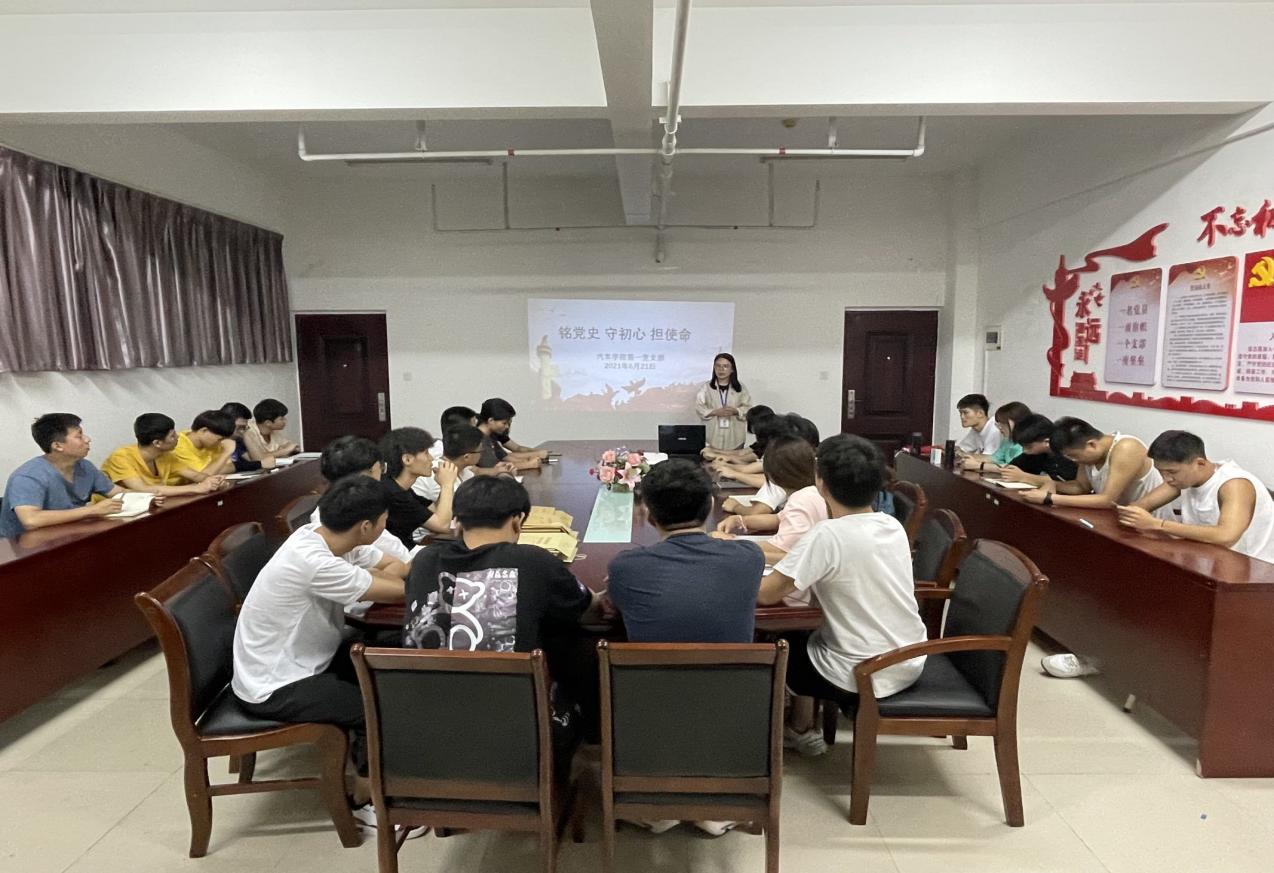 為慶祝中國共產(chǎn)黨建黨100周年,進(jìn)一步增強(qiáng)黨組織的凝聚力和戰(zhàn)斗力,進(jìn)一步強(qiáng)化全體預(yù)備黨員的黨性意識,激勵(lì)預(yù)備黨員堅(jiān)定愛黨、為黨理想信念,2021年6月21日晚,汽車學(xué)院第一黨支部書記姚美妃組織黨員于圖書館九樓會(huì)議室開展“銘黨史、守初心、擔(dān)使命”活動(dòng),在回顧往昔中感懷黨恩,在重溫誓言中銘記宗旨。