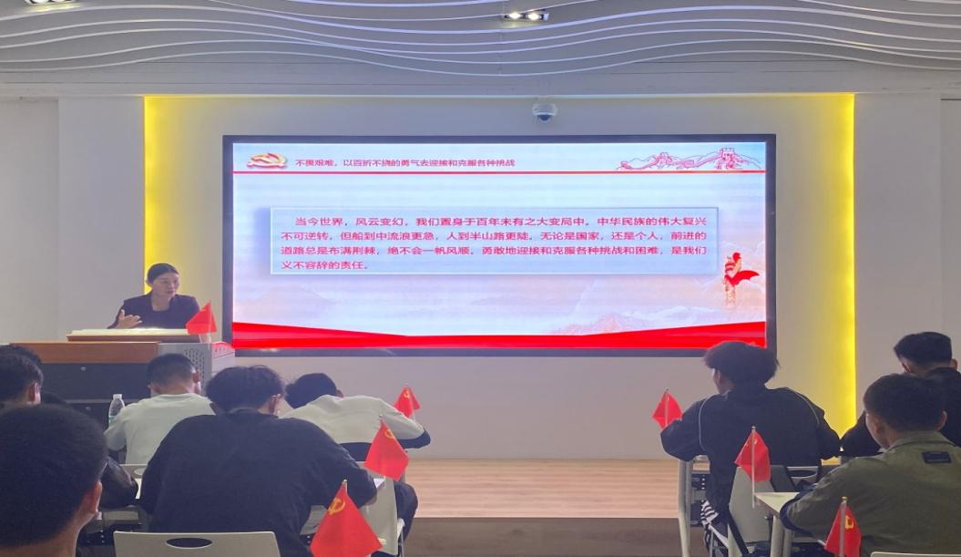 蔡昀平老師為培訓(xùn)班講授第二課《請黨放心,強(qiáng)國有我——聽黨話、感黨恩、跟黨走》。她從四個(gè)部分展開:筑牢理想和信念之基,勇敢擔(dān)當(dāng)起時(shí)代的重任;像一粒種子一樣,永遠(yuǎn)扎根熱土、造福人民;不畏艱難,以百折不撓的勇氣去迎接和克服各種挑戰(zhàn);學(xué)無止境,永葆學(xué)習(xí)熱情和開拓精神。蔡老師鼓勵(lì)學(xué)員們將來無論做什么事,都能學(xué)習(xí)一生,思索一生,深諳“業(yè)精于勤荒于嬉,行成于思?xì)в陔S”的哲理,都能永遠(yuǎn)緊跟時(shí)代的步伐,始終保持對新領(lǐng)域、新事物、新思想、新技術(shù)的好奇心,發(fā)揚(yáng)嚴(yán)謹(jǐn)務(wù)實(shí)的科學(xué)精神,努力成為引領(lǐng)時(shí)代發(fā)展、文明進(jìn)步的奮斗者。