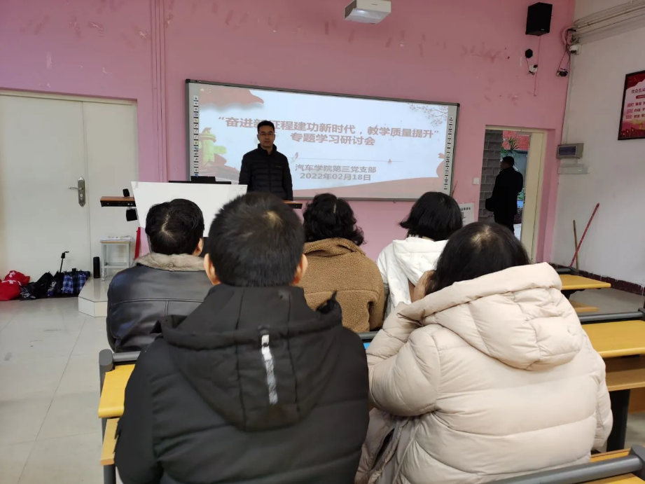 為促進(jìn)新學(xué)期的教學(xué)工作順利進(jìn)行,2022年2月18日,汽車學(xué)院第三黨支部在北區(qū)2#1-3組織開(kāi)展了“奮進(jìn)新征程建功新時(shí)代,促教學(xué)質(zhì)量提升”專題學(xué)習(xí)研討會(huì)-崗位練兵主題黨日活動(dòng),活動(dòng)由汽車學(xué)院第三黨支部書記朱劍寶主持。