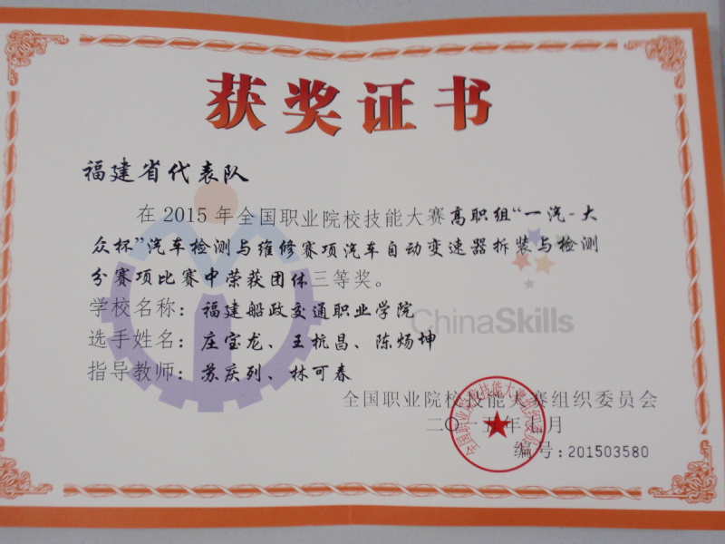 2015汽檢國賽 三等獎