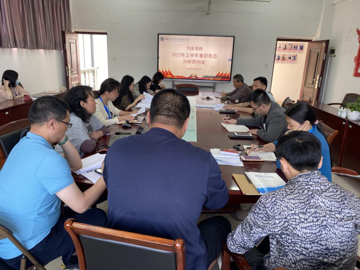 4月13日,汽車學(xué)院黨總支召開2022年上半年意識形態(tài)分析研判會。會議由汽車學(xué)院黨總支書記蔡華錦主持,黨總支委員、各教師黨支部書記、全體輔導(dǎo)員出席。