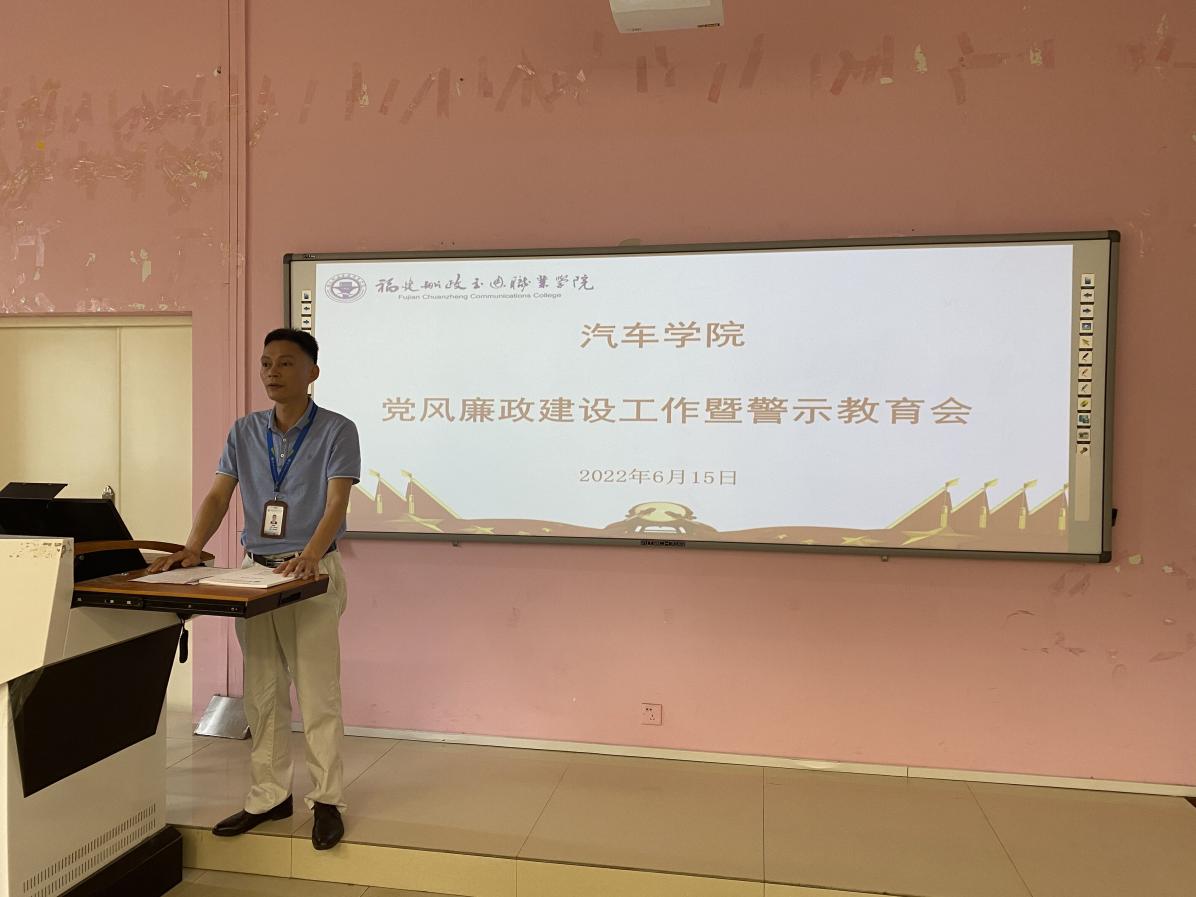 2022年6月15日下午,汽車學(xué)院召開(kāi)2022年黨風(fēng)廉政建設(shè)工作部署暨警示教育會(huì),汽車學(xué)院黨政班子、全體黨員干部、教職工參加了會(huì)議。