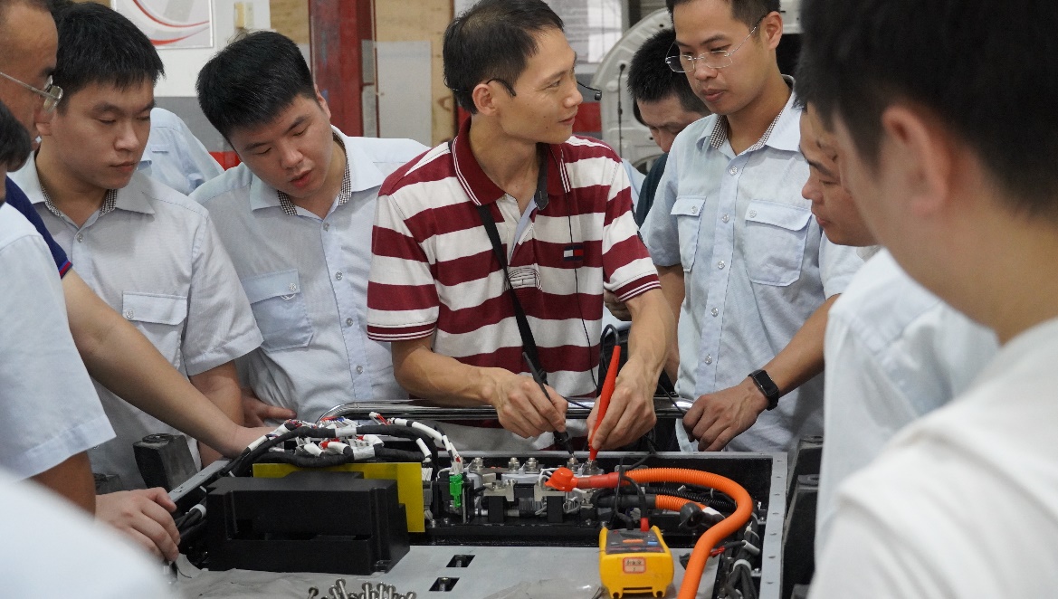 本次高研班受福建省人社廳委托,由福建省船政交通職業(yè)學(xué)院汽車學(xué)院舉辦,為期四天,采取“線上理論+線下實(shí)訓(xùn)”相結(jié)合的方式進(jìn)行。高研班內(nèi)容豐富,25日至26日采用線上理論教學(xué),圍繞新能源汽車現(xiàn)狀及發(fā)展趨勢(shì)、電池結(jié)構(gòu)原理、BMS技術(shù)和MCU技術(shù)等前沿知識(shí)進(jìn)行培訓(xùn);27日至28日采用線下實(shí)訓(xùn)教學(xué),結(jié)合理論對(duì)動(dòng)力電池的裝配檢測(cè)、驅(qū)動(dòng)電機(jī)的裝配檢測(cè)、整車控制技術(shù)和常見(jiàn)故障診斷等進(jìn)行交流研討。循序漸進(jìn)、理論實(shí)訓(xùn)結(jié)合教學(xué)方式,讓學(xué)員能夠真正掌握新能源汽車“三電”技術(shù),并應(yīng)用于實(shí)際工作當(dāng)中。