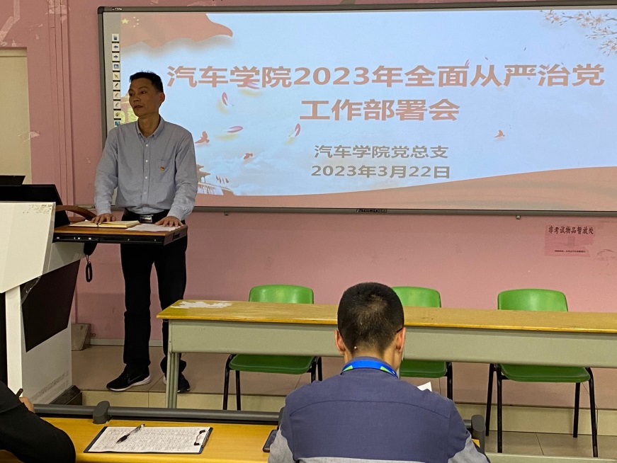 為全面貫徹黨的二十大精神,推進全面從嚴治黨工作,3月22日下午,汽車學(xué)院在北區(qū)2號樓103教室召開2023年全面從嚴治黨工作部署會,全體教職工參會。