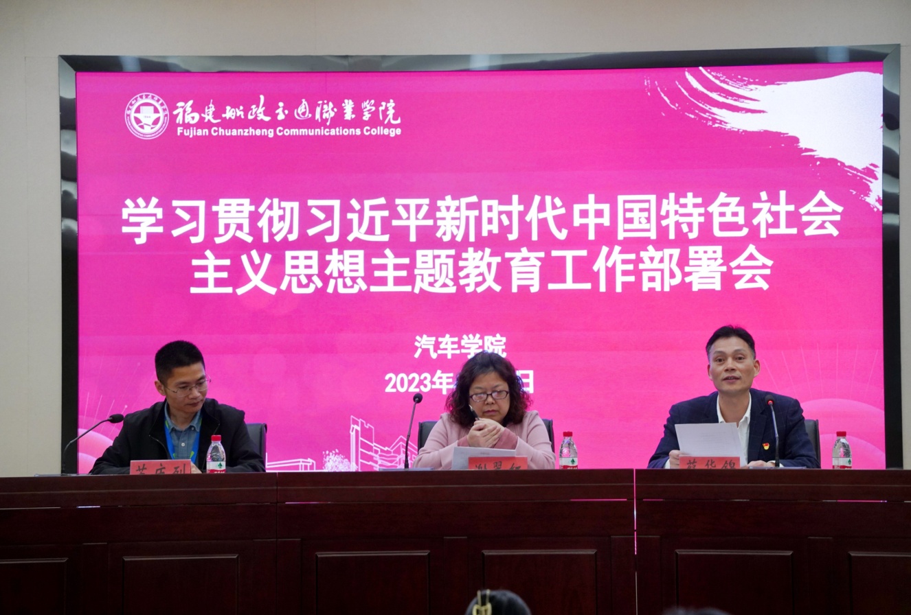2023年4月26日下午,汽車學院在福船園藝新樓學術報告廳303召開學習貫徹習近平新時代中國特色社會主義思想主題教育工作部署會,學校主題教育協(xié)調推進二組組長紀委辦公室副處級紀檢員謝翠紅、宣傳統(tǒng)戰(zhàn)部副部長林文昌及汽車學院全體黨員參加了會議。