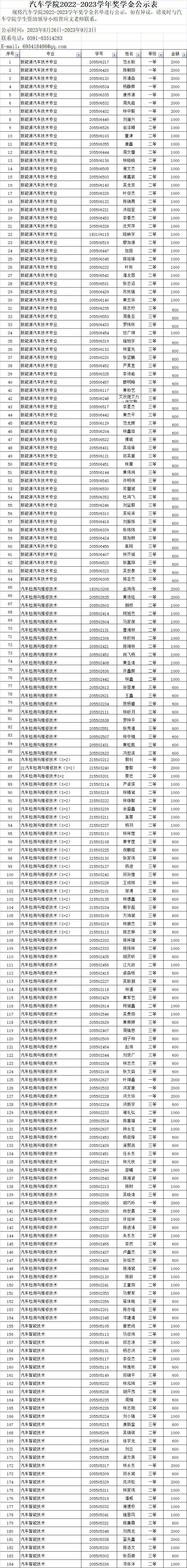 汽車學(xué)院2022-2023學(xué)年獎學(xué)金公示表