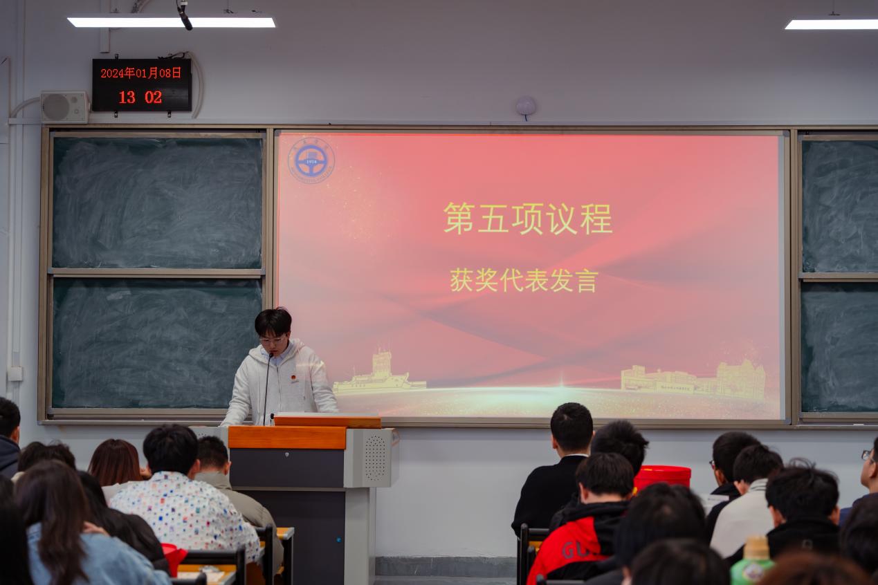 頒獎環(huán)節(jié)過后,24#205獲獎宿舍學生代表李武劍同學發(fā)表感言講話,他首先感謝學校精心搭建的活動平臺,回顧了他在文明宿舍建設(shè)月中和舍友們攜手共進的難忘時光,并向在場的同學分享其在改善宿舍環(huán)境、打造宿舍文化中好的經(jīng)驗和做法。