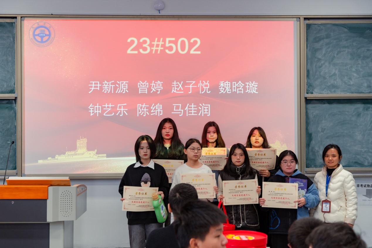接著,由汽車學院輔導(dǎo)員黃唐芬、朱慧君、林思遠老師分別上臺,為帶班宿舍獲獎的同學頒發(fā)“文明宿舍先進個人”榮譽證書和精美獎品。