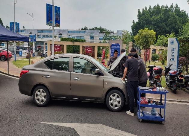 在現(xiàn)場職業(yè)技能服務(wù)社會環(huán)節(jié)(圖4圖5),汽車學(xué)院黃林火老師帶領(lǐng)學(xué)生進(jìn)行了汽車保養(yǎng)和汽車修理等社會服務(wù),鍛煉了學(xué)生們的實(shí)踐技能、團(tuán)隊(duì)協(xié)作和服務(wù)社會的能力。這些活動不僅檢驗(yàn)了學(xué)生們的學(xué)習(xí)成果,也為他們提供了一個展示自我、交流學(xué)習(xí)的平臺。