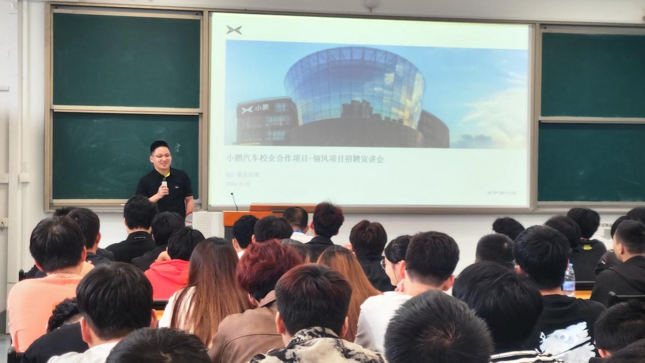 小鵬汽車售后培訓(xùn)運(yùn)營(yíng)負(fù)責(zé)人郭晉嶸經(jīng)理隨后全面闡述了小鵬汽車的輝煌發(fā)展歷程和獨(dú)特的企業(yè)文化,并對(duì)“翎風(fēng)”項(xiàng)目的宏偉藍(lán)圖及選拔機(jī)制進(jìn)行了深入解讀。他的話語中充滿了對(duì)未來人才的渴望和對(duì)項(xiàng)目的信心,讓在場(chǎng)的師生們深受鼓舞。