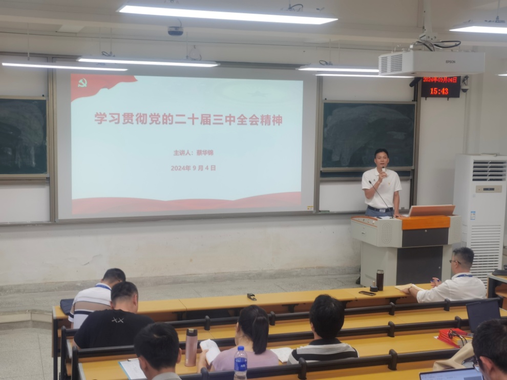 202494日,我院在22號(hào)樓汽一階梯教室開(kāi)展學(xué)習(xí)貫徹黨的二十屆三中全會(huì)精神宣講報(bào)告會(huì)。學(xué)院黨總支書記蔡華錦作宣講報(bào)告,全體教職工參會(huì)。