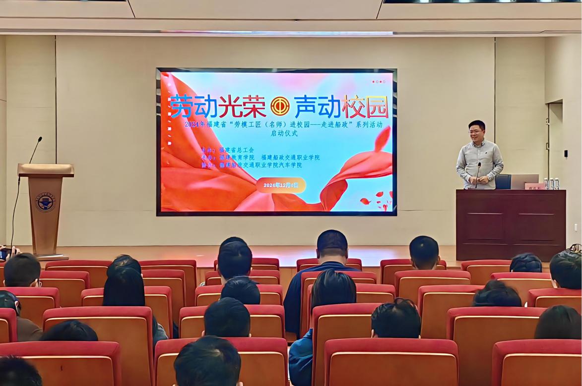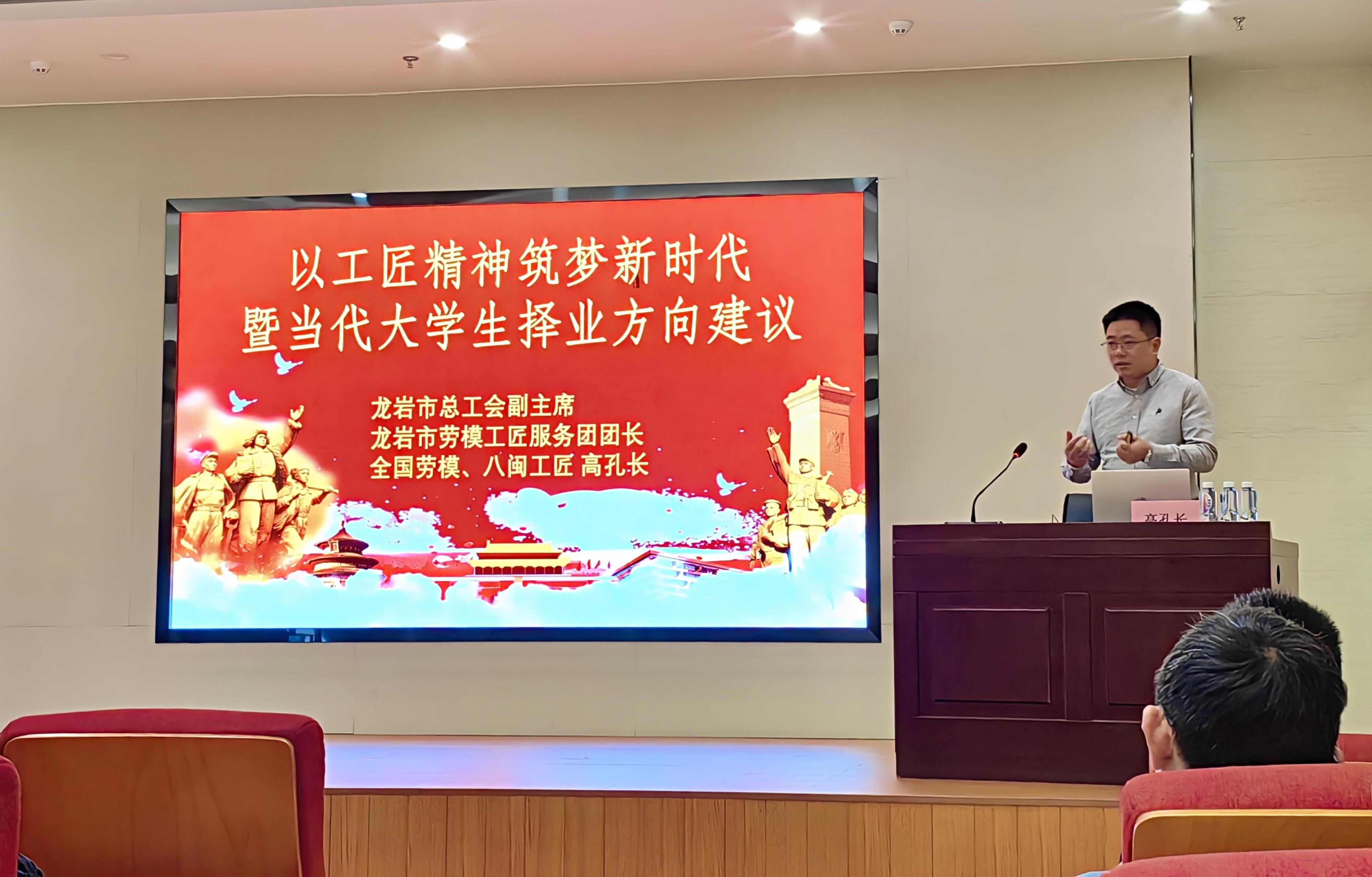 為深入學(xué)習(xí)宣傳貫徹黨的二十屆三中全會(huì)精神,大力弘揚(yáng)勞模精神、勞動(dòng)精神和工匠精神,引導(dǎo)廣大師生牢固樹立正確的人生觀、價(jià)值觀和勞動(dòng)觀,12月4日下午,汽車學(xué)院在南區(qū)藝新樓304會(huì)議室舉行“勞動(dòng)光榮·聲動(dòng)校園”----2024年福建省“勞模工匠(名師)進(jìn)校園---走進(jìn)船政”系列活動(dòng),本次活動(dòng)邀請(qǐng)到全國(guó)勞動(dòng)模范,享受國(guó)務(wù)院政府特殊津貼專家,福建新龍馬汽車股份有限公司高孔長(zhǎng)先生作主題為《以工匠精神筑夢(mèng)新時(shí)代暨當(dāng)代大學(xué)生擇業(yè)方向建議》的專題講座,汽車學(xué)院全體教職工和學(xué)生百余人參加。