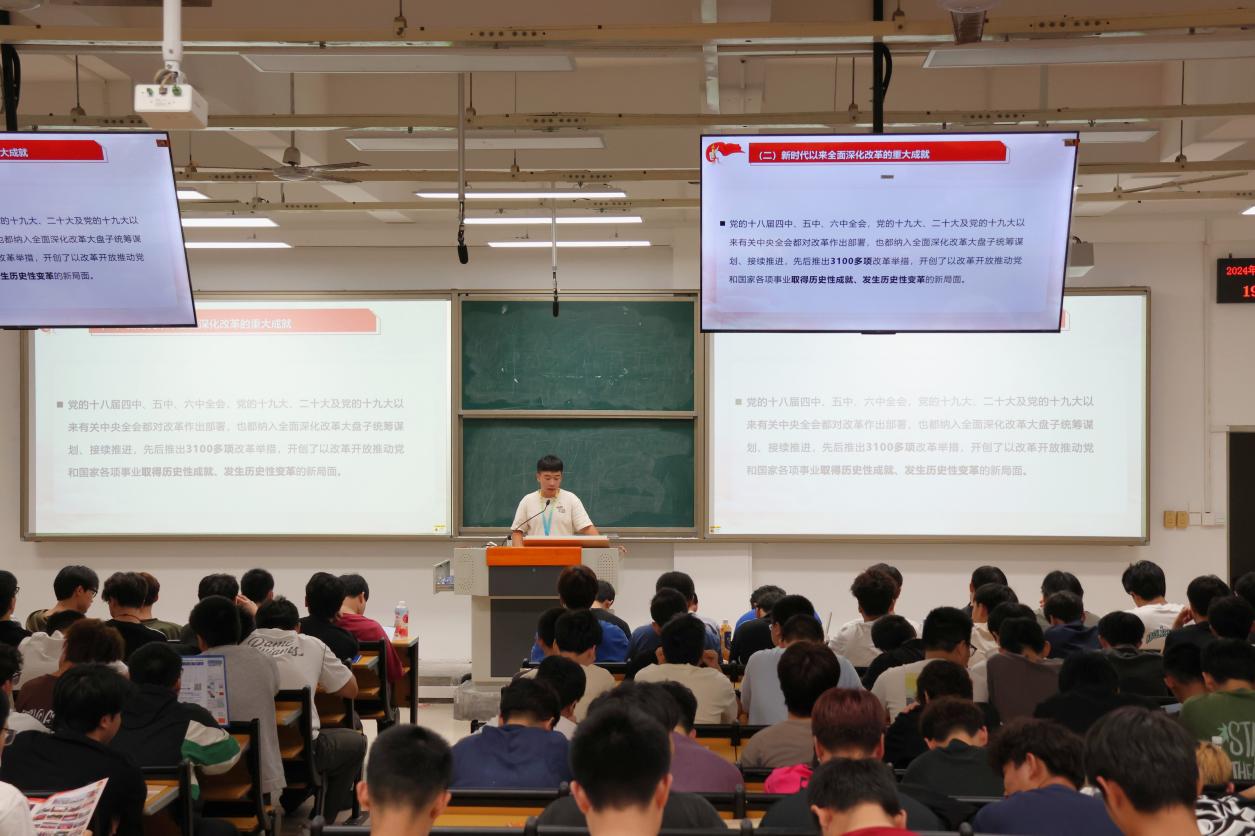 施文老師主要圍繞“黨的二十屆三中全會精神”為主題宣講,通過深入闡述黨的二十屆三中全會的豐富內(nèi)涵、重要意義、實踐要求等三個方面,進一步帶領(lǐng)廣大青年學(xué)子了解黨的二十屆三中全會的歷史意義、現(xiàn)實意義、理論意義,激勵同學(xué)們奮發(fā)篤行,將個人的青春夢想融入實現(xiàn)中華民族偉大復(fù)興的中國夢之中,不負韶華,不負時代,以實際行動書寫無愧于黨和人民的青春華章,爭做德智體美勞全面發(fā)展的社會主義建設(shè)者和接班人。