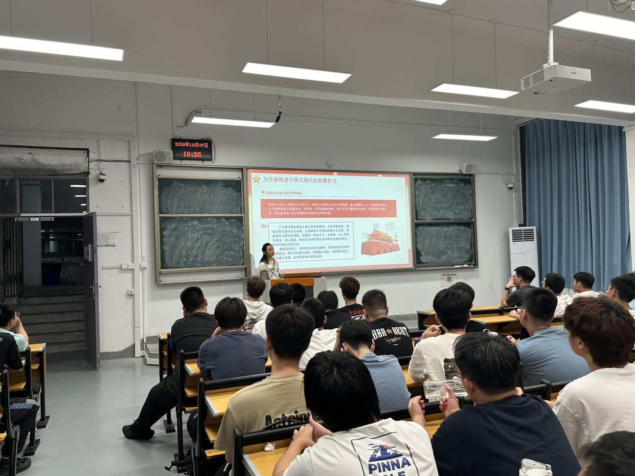 朱慧君老師圍繞“青年是推進中國式現(xiàn)代化的重要力量”“為全面推進中國式現(xiàn)代化挺膺擔(dān)當(dāng)”“以扎實的青年工作推動青年成長成才、建功立業(yè)”等三個方面立足崗位實際,從青年視角做主題宣講,結(jié)合自身實踐分享學(xué)習(xí)體會。通過結(jié)合團員青年們在日常學(xué)習(xí)生活中面臨到的常見的難點、困點,以自身成長經(jīng)歷和帶班往屆青年學(xué)生經(jīng)歷為經(jīng)驗啟示,引導(dǎo)新生在點滴的理論學(xué)習(xí)與實踐積累中學(xué)深悟透黨的二十屆三中全會精神的豐富內(nèi)涵和精神實質(zhì),把學(xué)習(xí)貫徹黨的二十屆三中全會精神轉(zhuǎn)化為推動學(xué)習(xí)工作的強大動力,奮力書寫為中國式現(xiàn)代化挺膺擔(dān)當(dāng)?shù)那啻浩隆?/span>