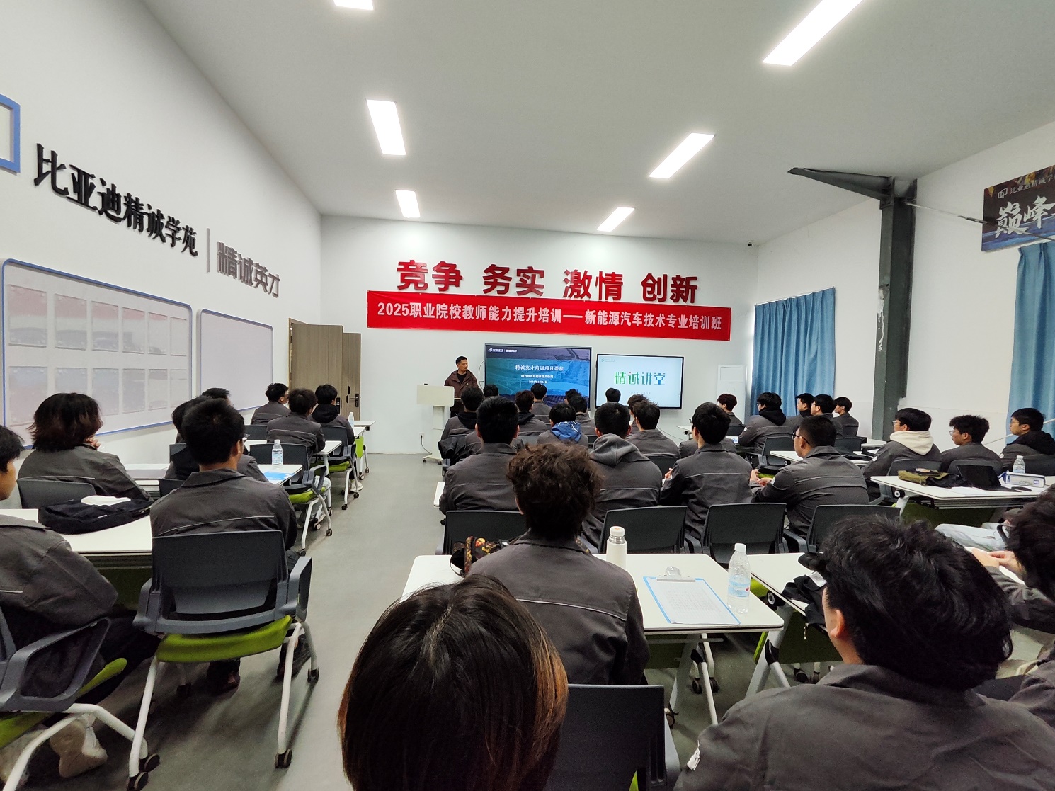 2025年3月26日下午14:00,比亞迪精誠(chéng)學(xué)苑"企業(yè)工匠進(jìn)校園"系列講座在中區(qū)比亞迪汽車(chē)實(shí)訓(xùn)基地教室舉行。本次以"動(dòng)力電池結(jié)構(gòu)原理及檢測(cè)"為主題的講座,不僅是一次專(zhuān)業(yè)知識(shí)的傳授,更是一場(chǎng)工匠精神的傳承盛會(huì),23級(jí)新能源汽車(chē)技術(shù)2班(比亞迪精誠(chéng)英才班)全體學(xué)生參加了此次活動(dòng)。主講人賴(lài)昌斌工程師作為比亞迪技術(shù)巡檢專(zhuān)家,15年來(lái)始終堅(jiān)守在汽車(chē)行業(yè)一線,以其精益求精的工匠態(tài)度,成為福建省比亞迪全品牌技術(shù)支持的骨干力量。講座中,他以"工匠育人"為理念,通過(guò)生動(dòng)詳實(shí)的案例,深入剖析了動(dòng)力電池的核心技術(shù),特別強(qiáng)調(diào)了在檢測(cè)環(huán)節(jié)中"毫厘不差"的專(zhuān)業(yè)標(biāo)準(zhǔn)。