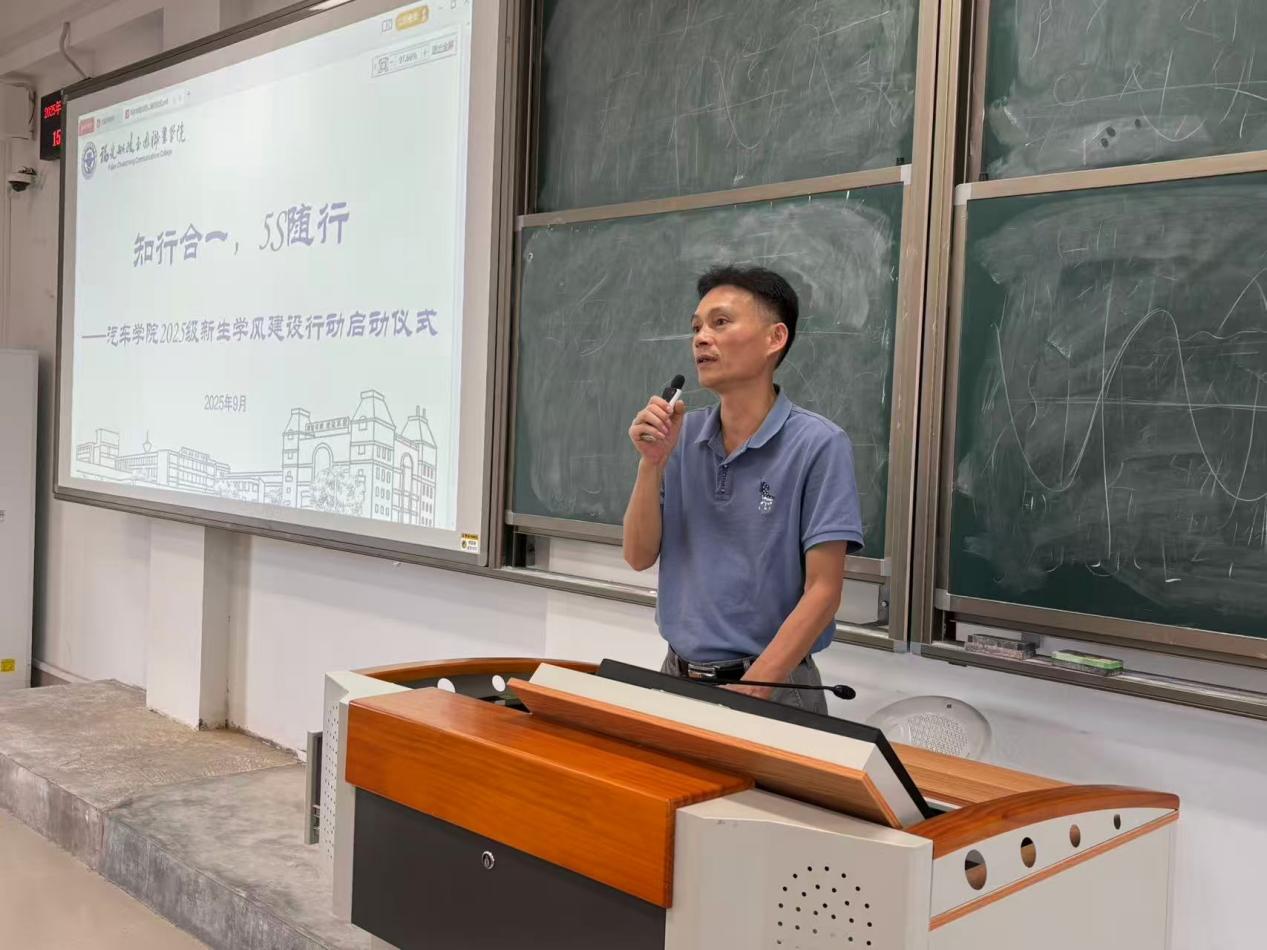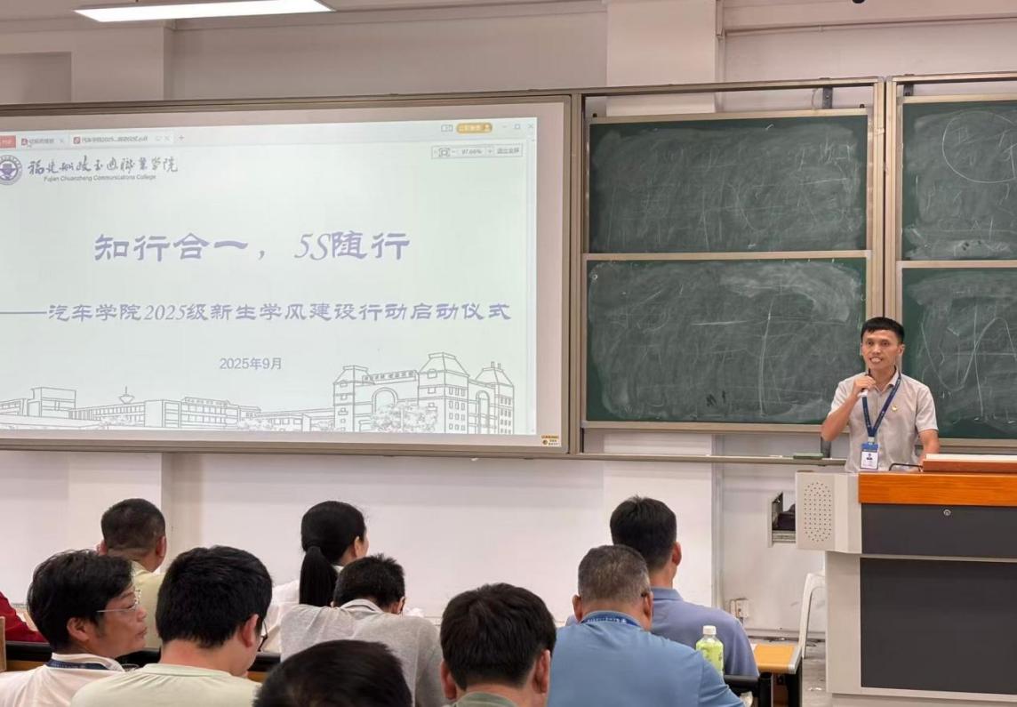 為深入學(xué)習(xí)貫徹黨的二十大精神和習(xí)近平總書記關(guān)于教育工作的重要指示精神,進(jìn)一步加強(qiáng)汽車學(xué)院學(xué)風(fēng)建設(shè),提升人才培養(yǎng)質(zhì)量,汽車學(xué)院于9月24日在北區(qū)26號(hào)樓605教室開展以“知行合一、5S隨行”為主題的2025級(jí)新生學(xué)風(fēng)建設(shè)啟動(dòng)儀式。學(xué)院黨政領(lǐng)導(dǎo)、全體教師、輔導(dǎo)員及2024級(jí)學(xué)生干部、2025級(jí)學(xué)生代表100多人參加此次活動(dòng)。儀式由學(xué)院副院長(zhǎng)林可春主持。