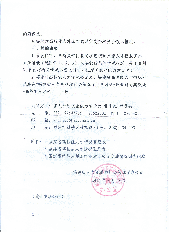 福建省人力資源社會(huì)保障廳辦公室關(guān)于開(kāi)展高技能人才隊(duì)伍情況摸底工作的通知
