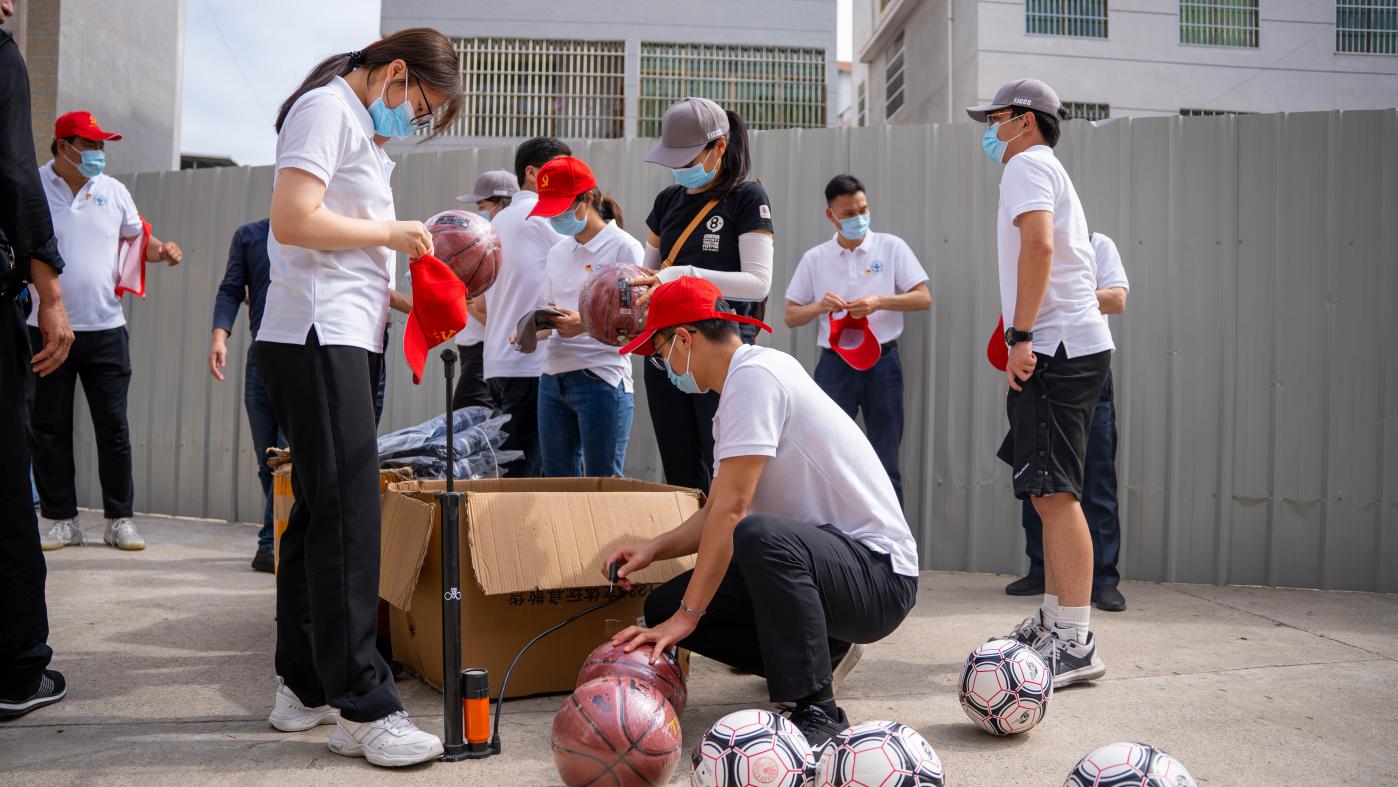 捐贈(zèng)現(xiàn)場(chǎng),學(xué)院為來(lái)自莒溪鎮(zhèn)山區(qū)的30名家庭困難的留守兒童發(fā)放新書包、新文具和兒童讀物,向莒溪鎮(zhèn)中心小學(xué)捐贈(zèng)籃球和足球、乒乓球和羽毛球、鋼絲跳繩等運(yùn)動(dòng)器材。