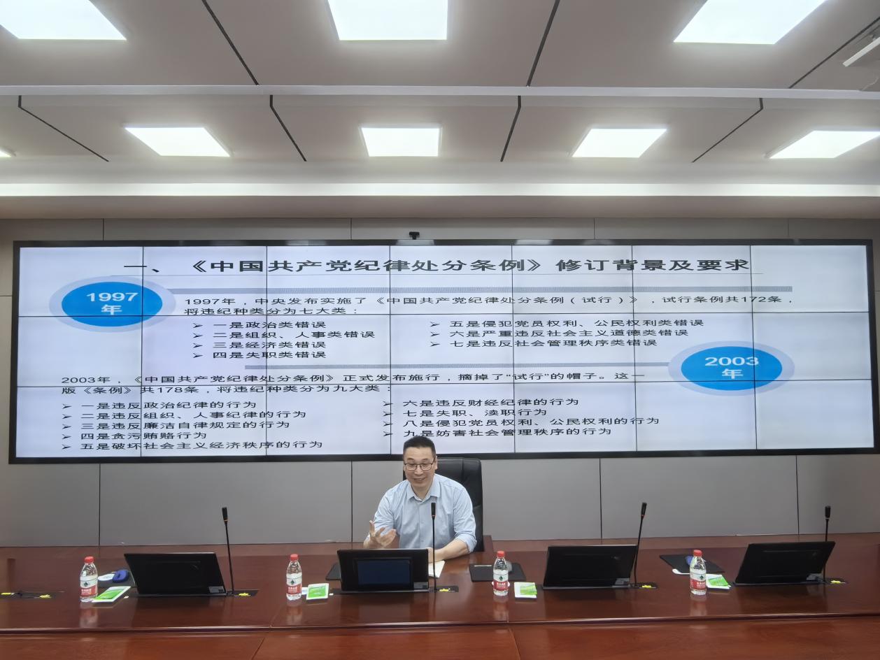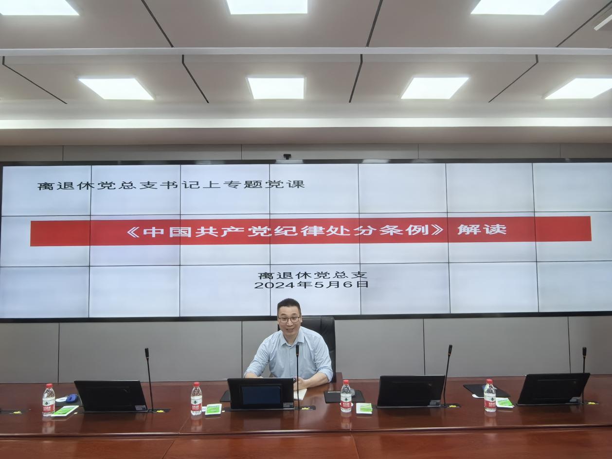 5月6日下午,離退休總支書記劉勇峰同志為離退休黨員干部講授紀(jì)律專題黨課,深入解讀新修訂的《中國(guó)共產(chǎn)黨紀(jì)律處分條例》,開(kāi)啟2024年紀(jì)律教育“第一課”。