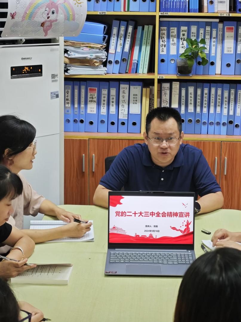 2024年9月18日上午,人事處及教師工作部全體黨員學習貫徹黨的二十屆三中全會精神宣講會在1號樓320舉行。宣講會由校黨支部書記阮毅同志主持。