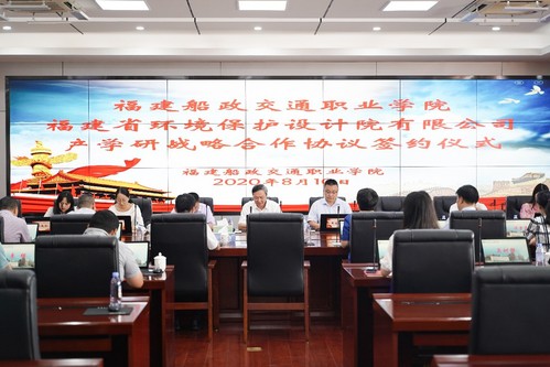 2020年8月10日上午8時30分,安全與環(huán)境學院環(huán)境工程技術(shù)專業(yè)、福建省環(huán)境保護設(shè)計院有限公司產(chǎn)學研戰(zhàn)略合作簽約儀式在一號樓六樓會議室舉行。福建省環(huán)境保護設(shè)計院有限公司董事長陳志揚、紀委書記鄢繼煒、副總經(jīng)理涂德貴、周澤友等一行15人與福建船政交通職業(yè)學院副校長高汝武、安全與環(huán)境學院書記鄭雪琴、副院長陳明仙(主持工作)、副院長陳榕、副院長范自盛及骨干教師參加了簽約儀式。