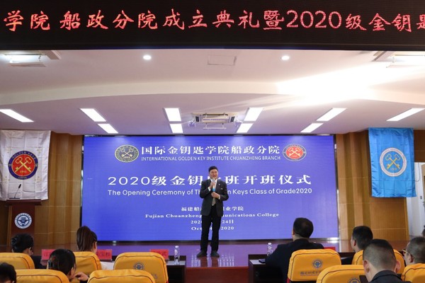 10月24日,國際金鑰匙學(xué)院船政分院成立典禮暨2020級金鑰匙班開班儀式在福建船政交通職業(yè)學(xué)院北區(qū)學(xué)術(shù)報告廳隆重舉行。中國金鑰匙副秘書長、國際金鑰匙學(xué)院(中國區(qū))運營中心運營官張勇,福建船政交通職業(yè)學(xué)院副院長高汝武教授,金鑰匙集團代表及學(xué)院師生代表共同出席典禮,典禮由航海學(xué)院副院長李道科主持。