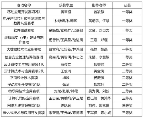 信息與智慧交通學(xué)院共派出15支代表隊,與來自全省各地高職院校參賽隊伍同臺競技,經(jīng)過激烈角逐。我院共榮獲福建省職業(yè)院校技能大賽一等獎6個、二等獎4個、三等獎4個。