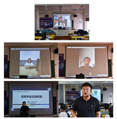 同時(shí),我們還通過(guò)現(xiàn)場(chǎng)視頻連線的方式講述了經(jīng)濟(jì)與管理學(xué)院幾位優(yōu)秀校友的成長(zhǎng)歷程。并特別邀請(qǐng)到2012級(jí)電子商務(wù)專(zhuān)業(yè)的何俊鋒同學(xué)作為船政優(yōu)秀校友代表與在場(chǎng)的同學(xué)們分享了自己求學(xué)及成功創(chuàng)業(yè)的經(jīng)歷,告訴同學(xué)們職業(yè)教育也能成功成才,成就出彩人生,勉勵(lì)同學(xué)們要敢想敢闖敢拼。
