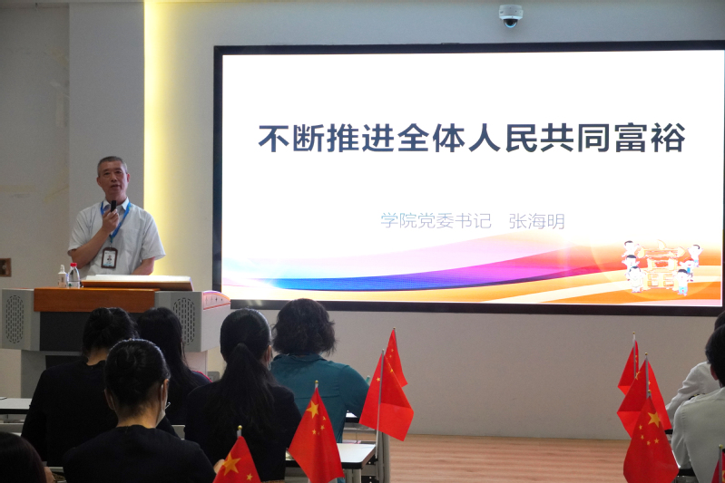 5月24日上午,校黨委書記張海明在圖書館三樓黨建館為2021級(jí)軟件技術(shù)1.2班學(xué)生講授《不斷推進(jìn)全體人民共同富?!穼n}形勢與政策課。