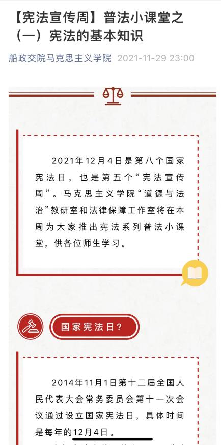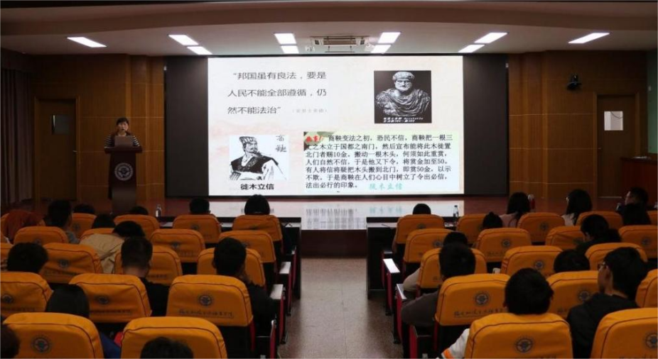 1.普法宣傳,培養(yǎng)法治觀念。在全面依法治國的背景下,培養(yǎng)學(xué)生的法治思維方式,普及基本法律知識,既是課程的重要內(nèi)容,也是引導(dǎo)學(xué)生明理尊法、護航人生的重要途徑。支部黨員依托“法學(xué)社”社團經(jīng)常性為學(xué)生進行法治宣傳、開設(shè)法治講座等,為學(xué)生傳經(jīng)送寶、保駕護航。