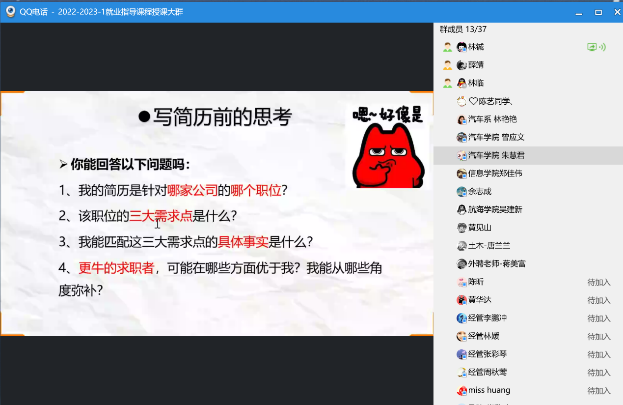 林鋮老師通過真實案例分析指出學(xué)生在簡歷制作和面試過程中常見的問題,并提出改進(jìn)應(yīng)對措施,讓簡歷簡潔有力,重點突出,減少了因簡歷制作失誤而錯失就業(yè)良機的遺憾。