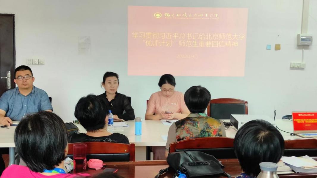 會(huì)上,與會(huì)教師在林佳梅副院長(zhǎng)的帶領(lǐng)下集體學(xué)習(xí)了習(xí)近平給北京師范大學(xué)“優(yōu)師計(jì)劃”師范生的回信,集中觀看了《習(xí)近平的教師情》專題片,并結(jié)合自身實(shí)際,交流學(xué)習(xí)心得和體會(huì)。全體教師一致表示,在黨的二十大即將召開之際,習(xí)近平總書記給北師大“優(yōu)師計(jì)劃”師范生的重要回信,充分體現(xiàn)了以習(xí)近平同志為核心的黨中央對(duì)廣大教師的親切關(guān)懷和特殊厚愛,對(duì)教育系統(tǒng)是極大的鼓勵(lì)和鞭策。學(xué)習(xí)貫徹落實(shí)好習(xí)近平總書記的重要回信精神,對(duì)于夯實(shí)學(xué)院教師隊(duì)伍建設(shè)的基礎(chǔ)地位和推動(dòng)職業(yè)教育高質(zhì)量發(fā)展具有重大意義。