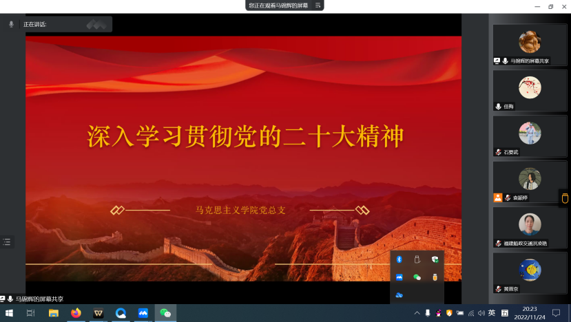 為進(jìn)一步落實(shí)好黨的二十大精神進(jìn)課堂,發(fā)揮思政課落實(shí)立德樹人根本任務(wù)的關(guān)鍵課程作用,馬克思主義學(xué)院黨總支組織全體教師多次參加教育部組織的理論大講堂宣講報(bào)告會(huì),參加由中共福建省委教工委、福建省教育廳、福建師范大學(xué)主辦的本碩博一體推進(jìn)黨的二十大精神融入思政課研討會(huì)暨學(xué)習(xí)貫徹黨的二十大精神思政課教師集體備課會(huì),組織“黨的二十大報(bào)告內(nèi)容進(jìn)課堂”教學(xué)研討會(huì)和集體備課會(huì),著力提升思政教師在課堂教學(xué)環(huán)節(jié)將報(bào)告新提法新思想融入到當(dāng)前的各門思政課課堂教學(xué)能力。