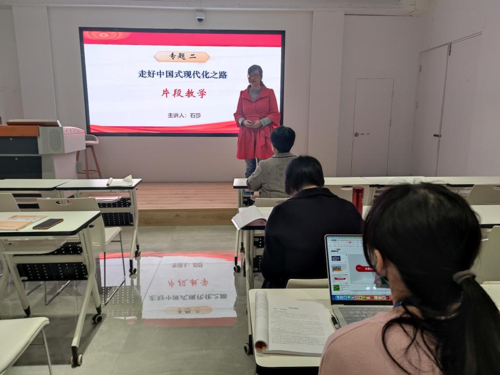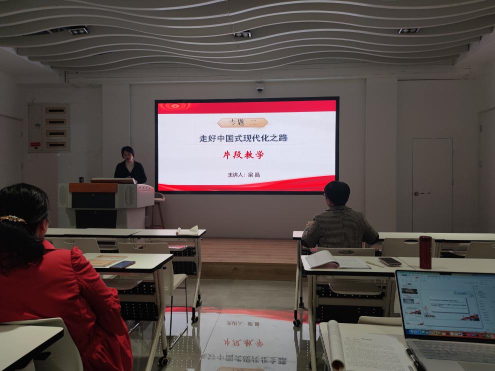 202339日,馬克思主義學院“形勢與政策”教研室在黨建館開展了本學期“優(yōu)·美”教學工作坊第二次教研活動。本次教研活動圍繞形勢與政策專題二“走好中國式現(xiàn)代化之路”展開,由嚴兵老師主講,石莎和梁晶老師進行無生片段教學,全體任課教師參加了教研活動。