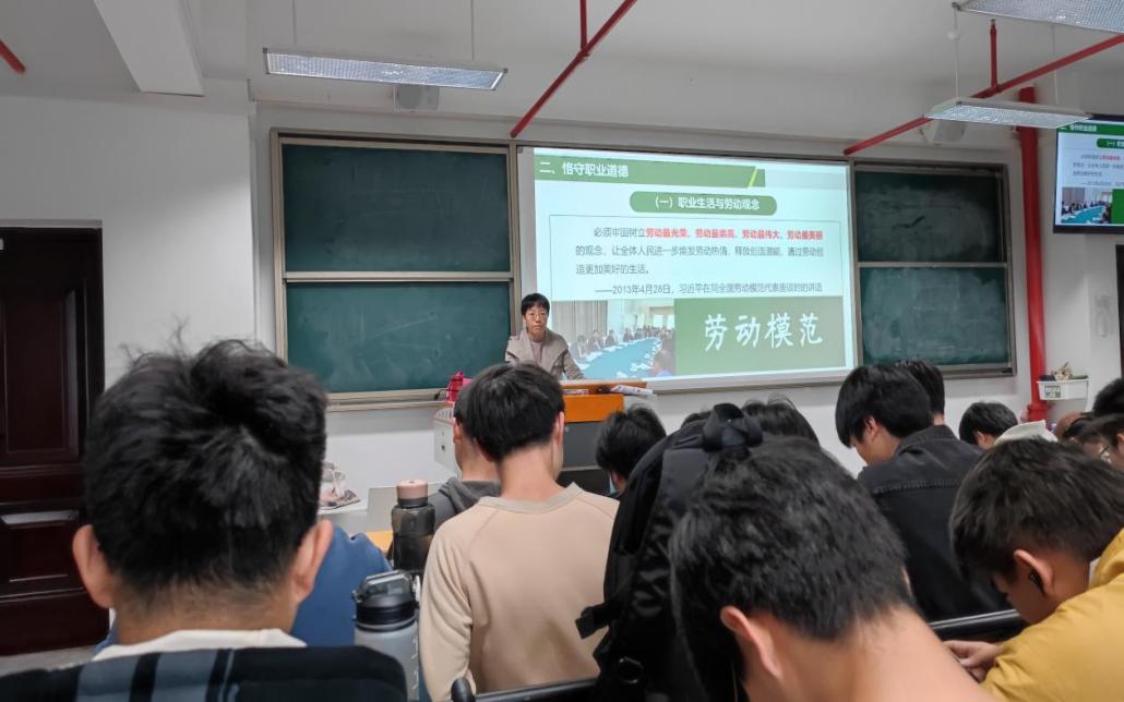 江暉老師在給2022級現代物流管理1、2班講授“職業(yè)生活與勞動觀念”