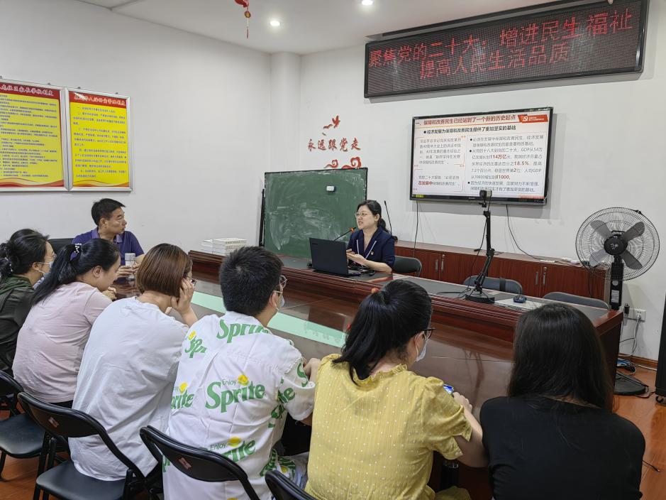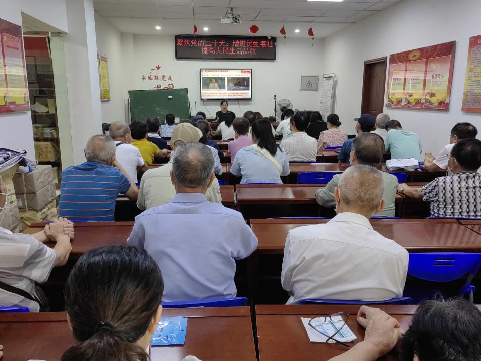 為深入開(kāi)展學(xué)習(xí)貫徹習(xí)近平新時(shí)代中國(guó)特色社會(huì)主義思想主題教育,推動(dòng)黨的二十大精神入腦入心、走深走實(shí),讓廣大黨員群眾全面、準(zhǔn)確、及時(shí)地學(xué)習(xí)掌握黨的二十大精神,2023年6月16日,馬克思主義學(xué)院宣講團(tuán)成員黃晉京老師應(yīng)金山街道鑫龍社區(qū)邀請(qǐng),為該社區(qū)工作人員及退休黨員講授了題為“聚焦黨的二十大:增進(jìn)民生福祉 提高人民生活品質(zhì)”黨的二十大精神專題黨課。