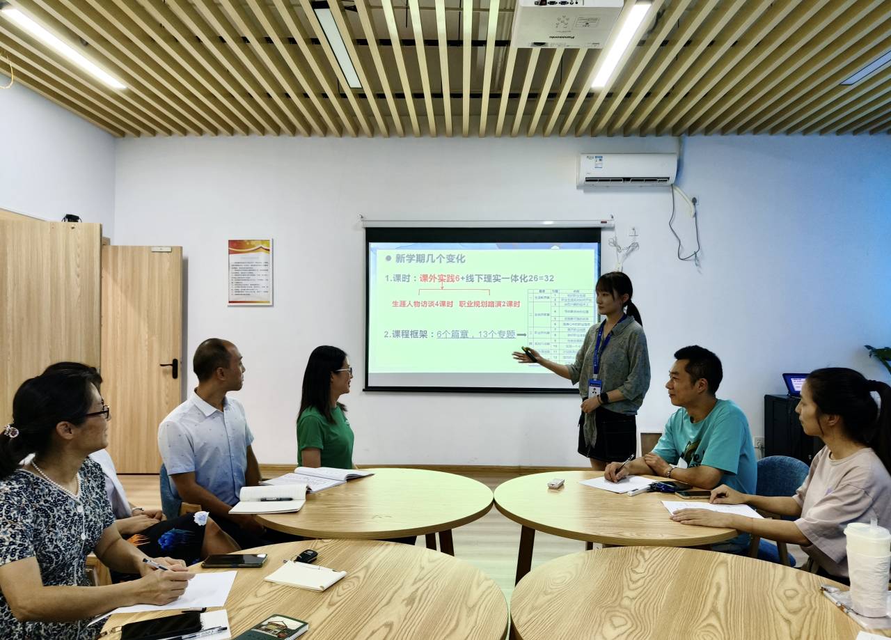 本次教研活動圍繞新學(xué)期大學(xué)生職業(yè)生涯規(guī)劃與發(fā)展課程,首先由教研室主任李想針對課程的新變化,包括內(nèi)容重構(gòu)、課時分配、考核方法等方面進(jìn)行規(guī)范統(tǒng)一,接著由朱涵、吳建新兩位老師進(jìn)行專題一、二的教學(xué)設(shè)計介紹與教學(xué)片斷展示。