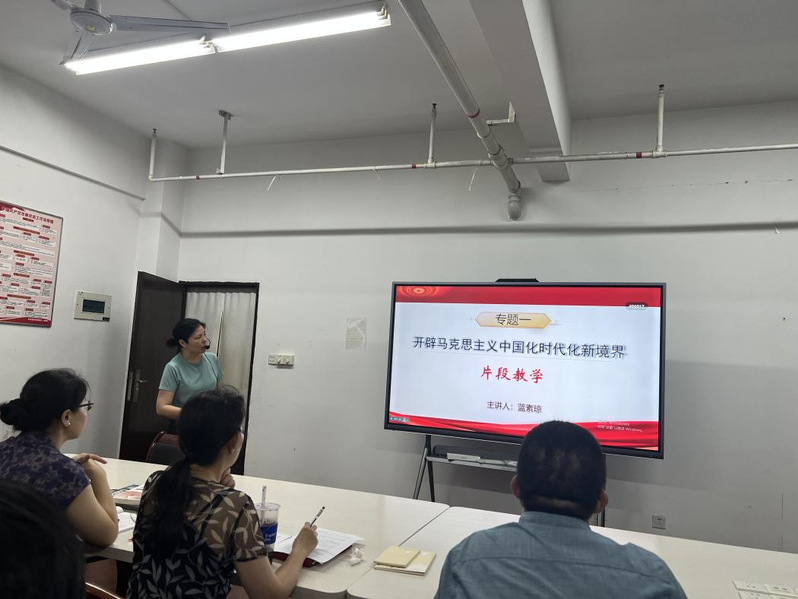 2023830日,馬克思主義學(xué)院“形勢(shì)與政策”教研室在圖書館1101會(huì)議室開展了本學(xué)期“優(yōu)·美”教學(xué)工作坊第一次教研活動(dòng)。本次教研活動(dòng)圍繞形勢(shì)與政策專題一“開辟馬克思主義中國化時(shí)代化新境界”展開,由嚴(yán)兵老師主講,藍(lán)素瓊和連萬桂老師進(jìn)行無生片段教學(xué),全體馬院教師參加了此次集體備課,這是首次全員參與的教研活動(dòng)。