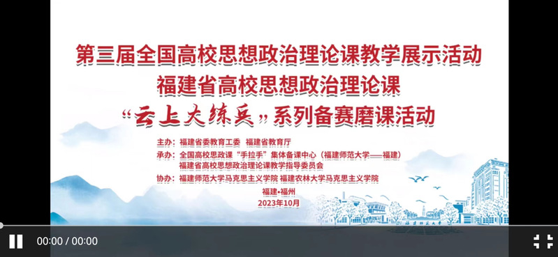 為深入貫徹落實(shí)黨的二十大精神,更好地引導(dǎo)支部思政課教師將新時(shí)代偉大變革全面融入思政課教學(xué),創(chuàng)新講好“思政課”,切實(shí)提高支部戰(zhàn)斗力。10月24日,馬克思主義學(xué)院第一黨支部組織支部全體黨員教師在線上觀看福建省“云上大練兵”系列備賽磨課直播活動(dòng)。