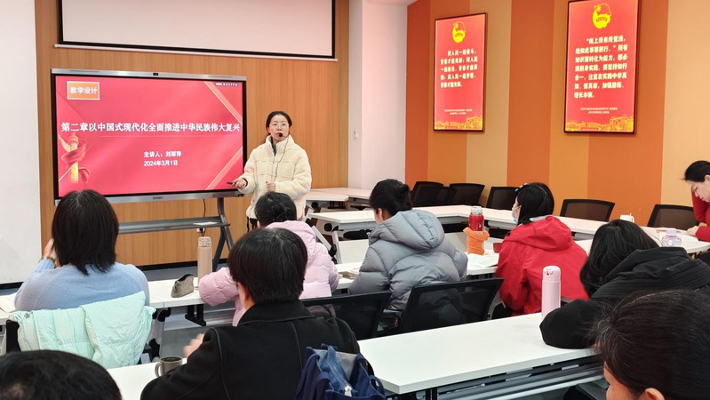 2024年3月1日,馬克思主義學院習近平新時代中國特色社會主義思想概論教研室開展了本學期第三次思政課教師“大練兵”暨“優(yōu)·美”教學工作坊集體備課活動。本次教研活動圍繞《習近平新時代中國特色社會主義思想概論》課程第二章“以中國式現(xiàn)代化全面推進中華民族偉大復興”展開,由劉麗萍老師擔任主講。
