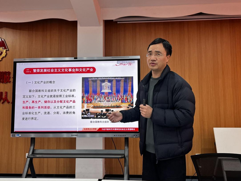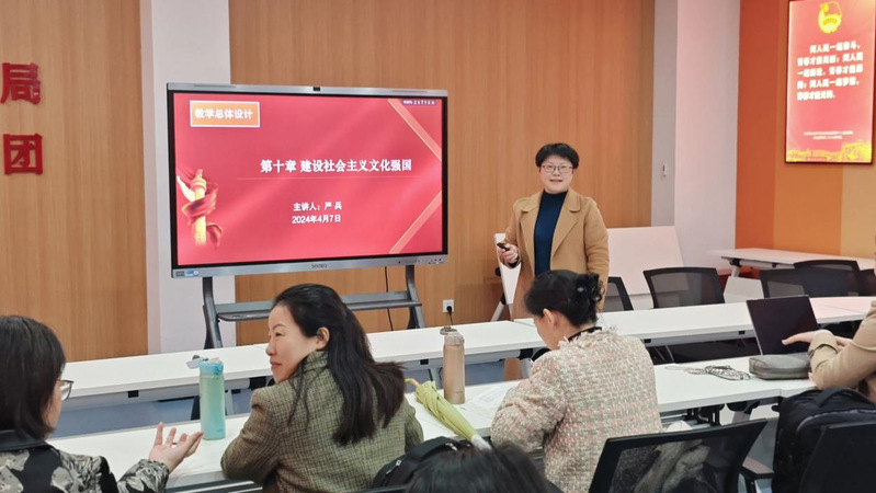 為更好地開展“習(xí)近平新時(shí)代中國特色社會(huì)主義思想概論”課程教學(xué),2024年4月7日,馬克思主義學(xué)院習(xí)近平新時(shí)代中國特色社會(huì)主義思想概論教研室開展了本學(xué)期第十一次思政課教師“大練兵”暨“優(yōu)·美”教學(xué)工作坊集體備課活動(dòng)。圍繞本課程的第十章“建設(shè)社會(huì)主義文化強(qiáng)國 ”展開教學(xué)研究。本次集體備課由嚴(yán)兵老師擔(dān)任主講,張玉祥與張瑞青老師分別做片段教學(xué)展示。