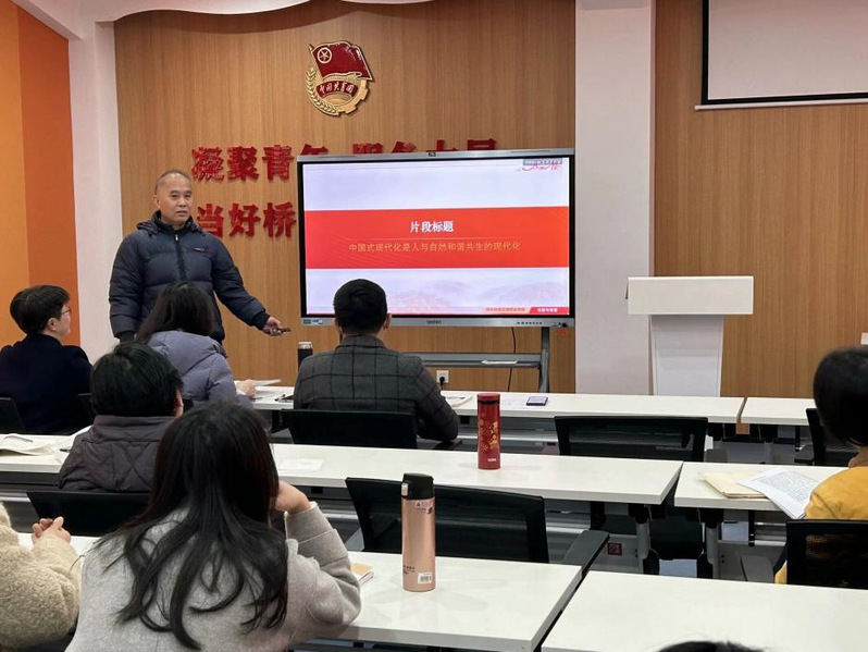 為更好地組織“形勢(shì)與政策”課程教學(xué),推動(dòng)習(xí)近平新時(shí)代中國特色社會(huì)主義思想進(jìn)教材、進(jìn)課堂、進(jìn)頭腦,2024年3月13日,馬克思主義學(xué)院形勢(shì)與政策教研室開展了本學(xué)期第一次思政課教師“大練兵”暨“優(yōu)·美”教學(xué)工作坊集體備課活動(dòng)。本次教研活動(dòng)圍繞“形勢(shì)與政策”課專題一“讀懂中國式現(xiàn)代化”展開,由嚴(yán)兵老師主講,石要武和林安其老師進(jìn)行無生片段教學(xué)。