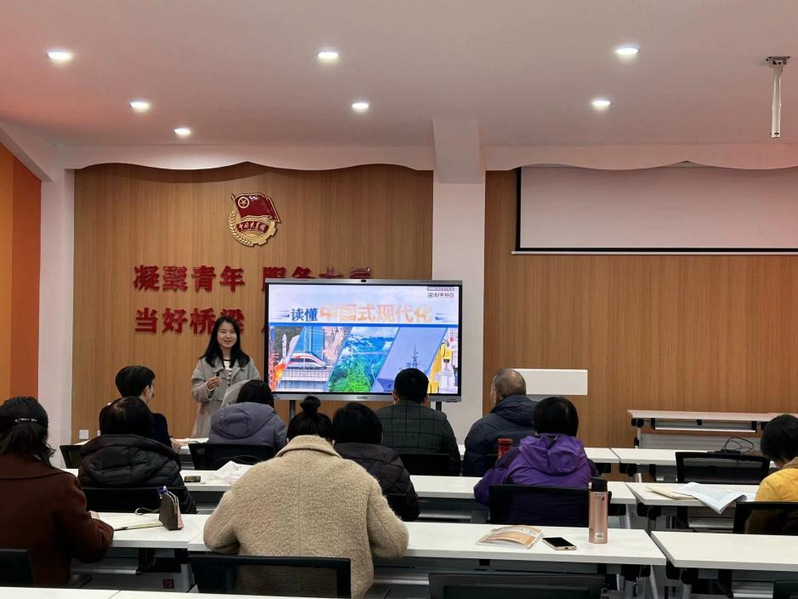 更好地組織“形勢(shì)與政策”課程教學(xué),推動(dòng)習(xí)近平新時(shí)代中國(guó)特色社會(huì)主義思想進(jìn)教材、進(jìn)課堂、進(jìn)頭腦,2024年3月13日,馬克思主義學(xué)院形勢(shì)與政策教研室開(kāi)展了本學(xué)期第一次思政課教師“大練兵”暨“優(yōu)·美”教學(xué)工作坊集體備課活動(dòng)。本次教研活動(dòng)圍繞“形勢(shì)與政策”課專(zhuān)題一“讀懂中國(guó)式現(xiàn)代化”展開(kāi),由嚴(yán)兵老師主講,石要武和林安其老師進(jìn)行無(wú)生片段教學(xué)。