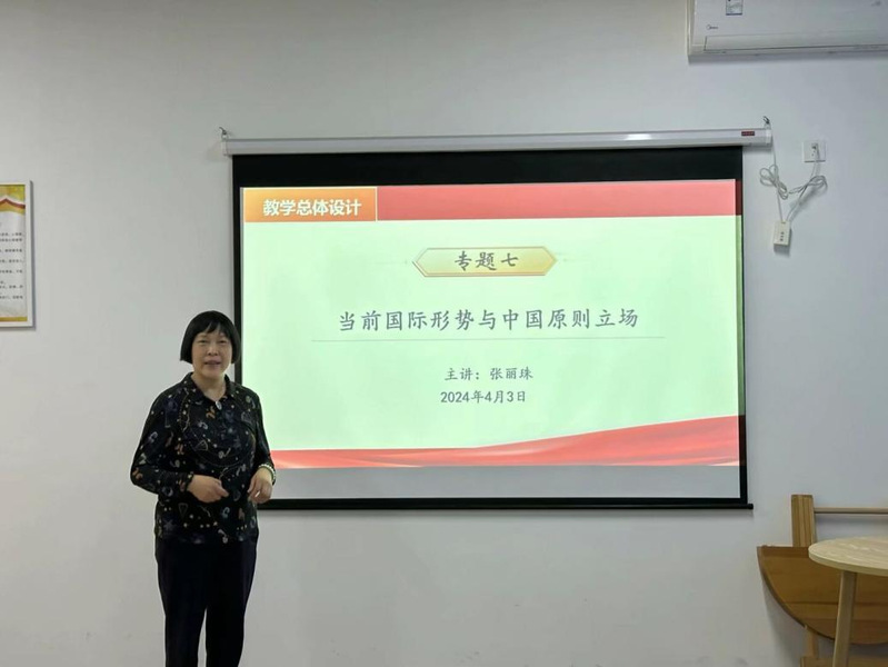 為更好地組織“形勢(shì)與政策”課程教學(xué),推動(dòng)習(xí)近平新時(shí)代中國(guó)特色社會(huì)主義思想進(jìn)教材、進(jìn)課堂、進(jìn)頭腦,2024年4月3日,馬克思主義學(xué)院形勢(shì)與政策教研室開展了本學(xué)期第二次思政課教師“大練兵”暨“優(yōu)·美”教學(xué)工作坊集體備課活動(dòng)。活動(dòng)圍繞本課程的專題“當(dāng)前國(guó)際形勢(shì)與中國(guó)原則立場(chǎng)”進(jìn)行教學(xué)研究。本次集體備課由張麗珠老師擔(dān)任主講,余夢(mèng)莉老師做片段教學(xué)展示。