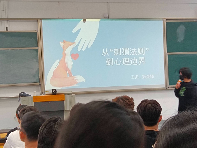 為了促進(jìn)大學(xué)生心理健康,5月15日,學(xué)院心理健康活動(dòng)中心邀請專職心理教師羅奕楠為學(xué)生們開展了《從“刺猬法則”到心理邊界》心理健康講座。