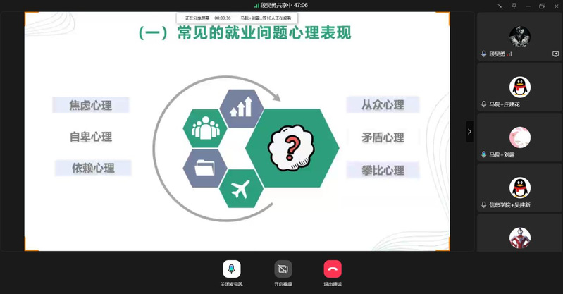 為進一步推進《就業(yè)指導》課程的規(guī)范化和專業(yè)化建設,提升就業(yè)指導課程教學質量,做好畢業(yè)班就業(yè)指導工作,促進畢業(yè)生更加充分更高質量就業(yè)。近日,馬克思主義學院就業(yè)指導教研室開展2024-2025-1學期《就業(yè)指導》暑期課程線上集體備課教研活動。此次活動由教研主任薛靖老師主持,全體專兼職任課教師參加。