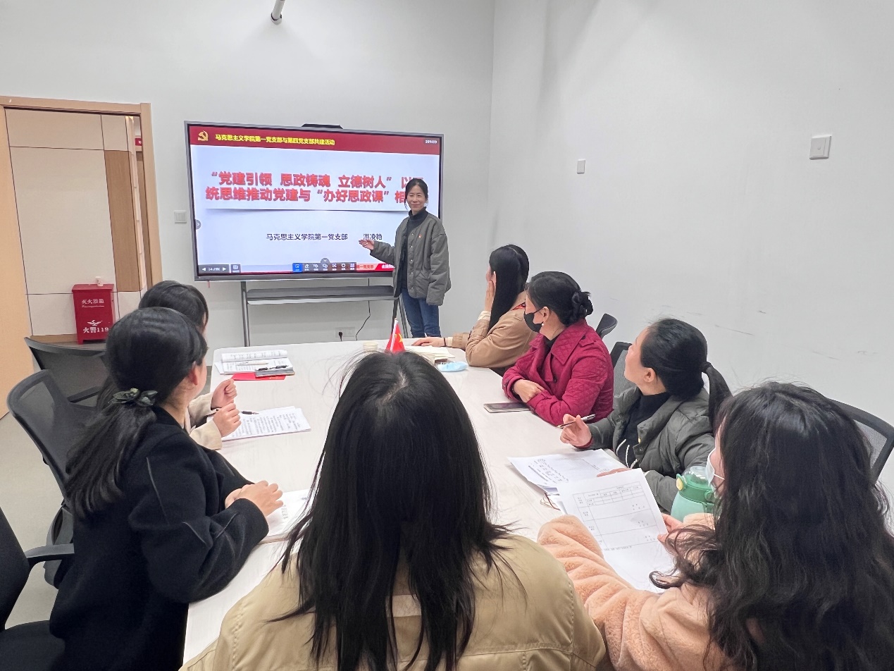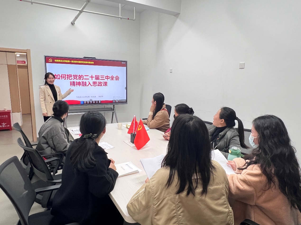 第一黨支部作為全國樣板支部,集中了《習(xí)近平新時(shí)代中國特色社會主義思想概論》課程和《毛澤東思想和中國特色社會主義理論體系概論》課程的幾位教學(xué)骨干,在發(fā)揮黨員先鋒模范作用、創(chuàng)新爭優(yōu)方面可圈可點(diǎn)。在共建活動中,第一黨支部書記洪凌艷以《“黨建引領(lǐng),思政鑄魂,立德樹人”——以系統(tǒng)思維推動黨建與“辦好思政課”》為題做了創(chuàng)建全國樣板支部的經(jīng)驗(yàn)分享;第一黨支部副書記范碧華就如何把黨的二十屆三中全會的精神融入思政課交流了自己的看法。