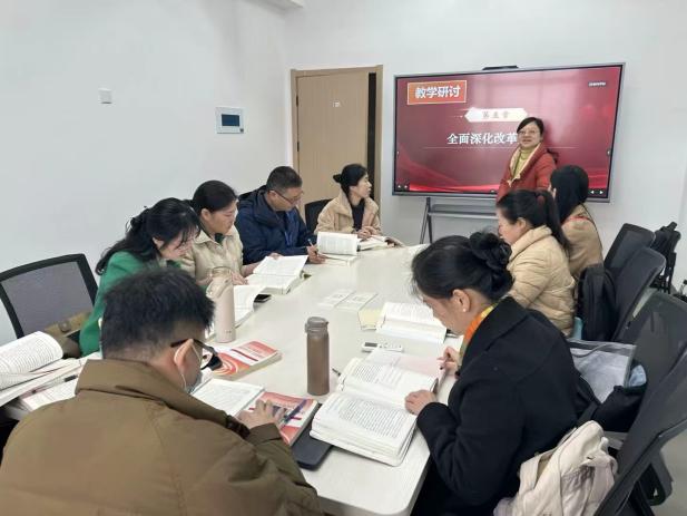 備課會由黃晉京老師主講第五章“全面深化改革開放”,洪凌艷老師主講第六章“推動高質量發(fā)展”。兩位老師分別就各自負責的章節(jié)內容進行了深入的解讀和研討。